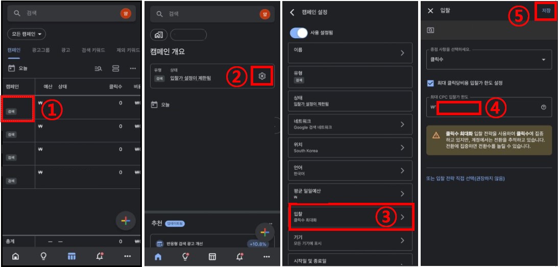 Google Ads 입찰가 변경 방법 (모바일)