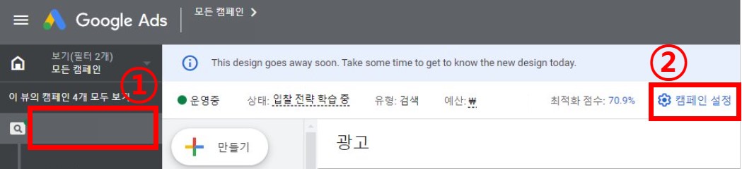 1-2) '캠페인 설정' 들어가는 두 번째 방법